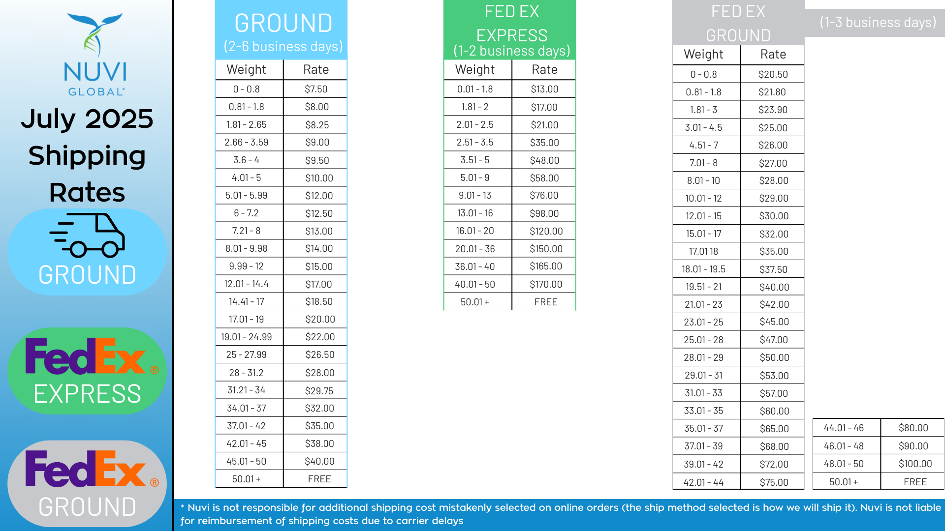 – All orders shipping cost is based on the weight of complete order.